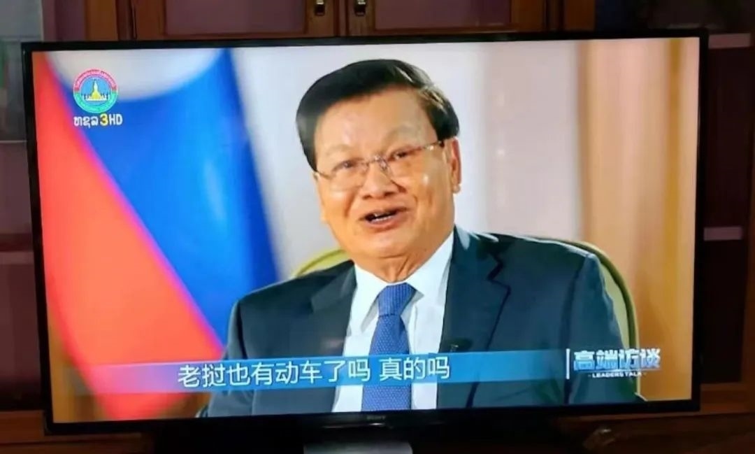 △專訪老撾國(guó)家主席通倫的節(jié)目在老撾國(guó)家電視臺(tái)播出