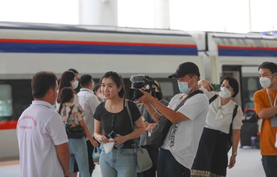 比如,專訪老撾國(guó)家主席通倫的節(jié)目中,主持人鄒韻在中老鐵路“瀾滄號(hào)”動(dòng)車上采訪當(dāng)?shù)芈每?,車窗外鐵路沿線風(fēng)光萬(wàn)千,總臺(tái)出品的歌曲《坐著火車去老撾》活潑輕盈,各國(guó)乘客用最真實(shí)的出行體驗(yàn),生動(dòng)展現(xiàn)了跨越山河、聯(lián)結(jié)友誼的中老鐵路,是共建“一帶一路”取得的實(shí)打?qū)嵉某删汀?/p>