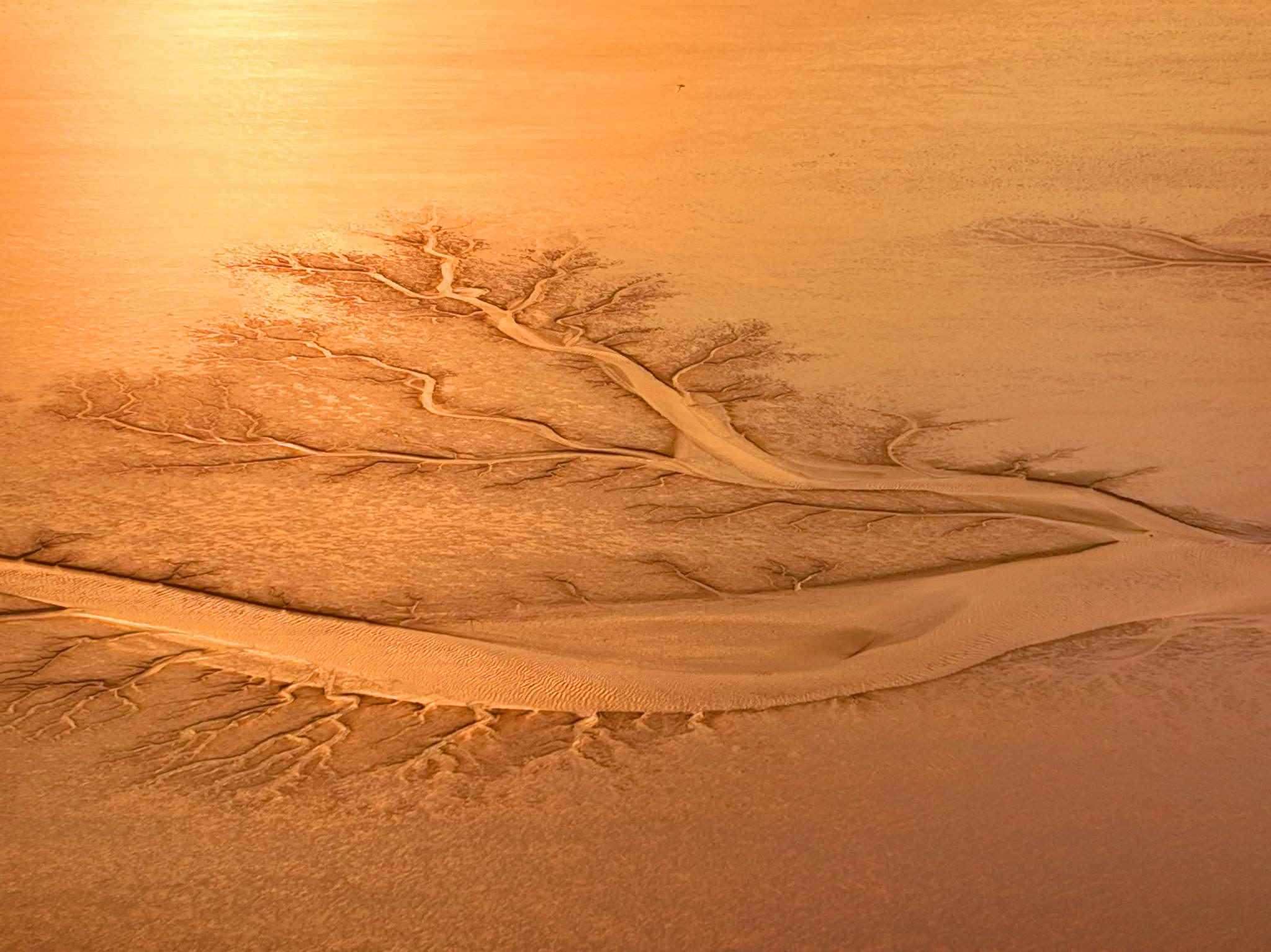 2023年4月21日,江蘇南通,啟東市江海瀾灣旅游度假區(qū)海域淺灘上出現(xiàn)“潮汐樹”景觀。視覺中國