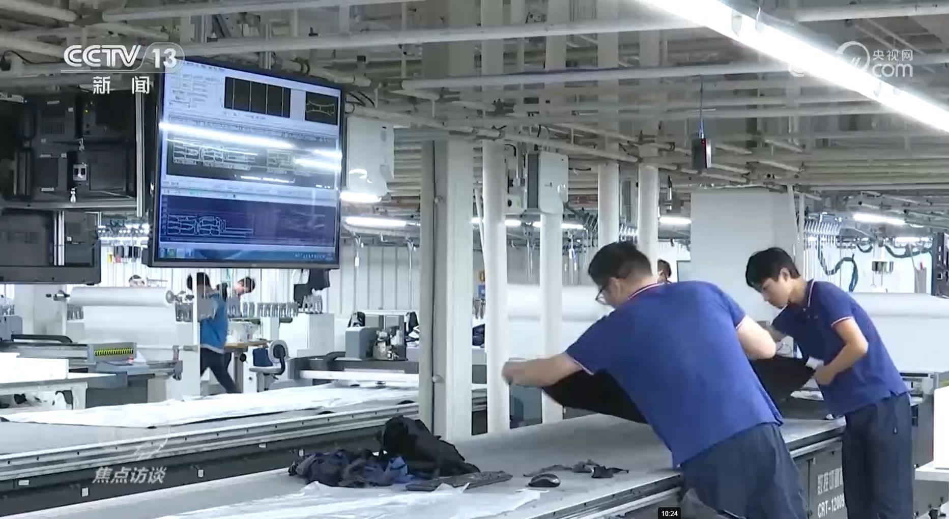 青島酷特智能股份有限公司經(jīng)理劉阿娜:“全球的客戶(hù)只要把一些核心的數(shù)據(jù)給到我們,幾秒鐘后會(huì)自動(dòng)生成客戶(hù)想要的版型,進(jìn)入生產(chǎn)。”