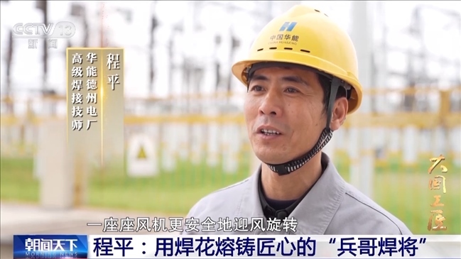 華能德州電廠高級焊接技師 程平:這十來年,新能源迎來了大的發(fā)展,每次看到經過我的手,一座座風機更安全地迎風旋轉,能夠參與新能源的建設,為國家出一份力,見證它的發(fā)展進程,我感到自己非常驕傲也很自豪。