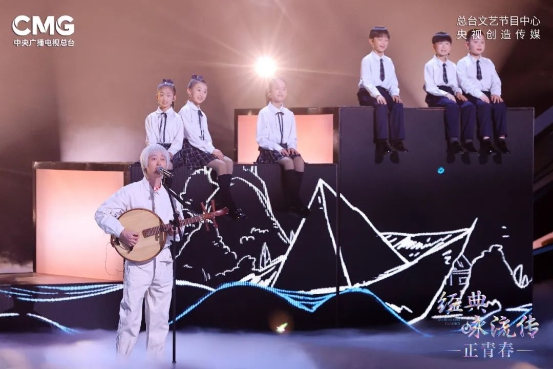 “逝者如斯夫,不舍晝夜?!痹跁r光的流逝中,最值得懷念的是那一去不復返的青春。無數(shù)文人墨客通過文字去珍藏時光的記憶,去尋找青春的蹤跡?!耙蝗~漁船兩小童,收篙停棹坐船中”,宋朝詩人楊萬里用一首清新自然的《舟過安仁》記錄美好童年。而對于很多現(xiàn)代人來說,童謠寄托著童年的回憶?!皩ぶ{計劃”項目發(fā)起人小河將楊萬里的詩詞巧妙改編成童謠,帶來充滿童趣的《搖船》舞臺。當天真爛漫的孩童將詩詞娓娓唱出,瞬間帶領觀眾穿越回詩中場景,也穿越回記憶中的童年?,F(xiàn)場還迎來一位特殊的嘉賓——84歲老人何洪瑞。他與小河還有孩子們一同唱響了記憶深處的童謠《盧溝橋》,此刻,跨越時間的永恒情感就這樣在音符中碰撞、交融。
