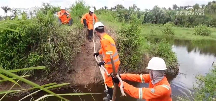 在勘探過程中,工作人員會用不同顏色的飄帶進行標(biāo)記,這種紅色的飄帶是代表保護樹種,禁止砍伐,藍色飄帶則指示著項目的路線。這些飄帶全都是用可降解材料制成的,在勘探任務(wù)結(jié)束后,還會有專門的小組對工區(qū)進行垃圾回收和雨林恢復(fù)工作。目前,項目已經(jīng)完成了70%的工作量,預(yù)計7月中旬可以順利竣工。一年多來,項目多次接受當(dāng)?shù)丨h(huán)保等部門的各項檢查,每一次審計和檢測都收到了相關(guān)方非常高的評價。