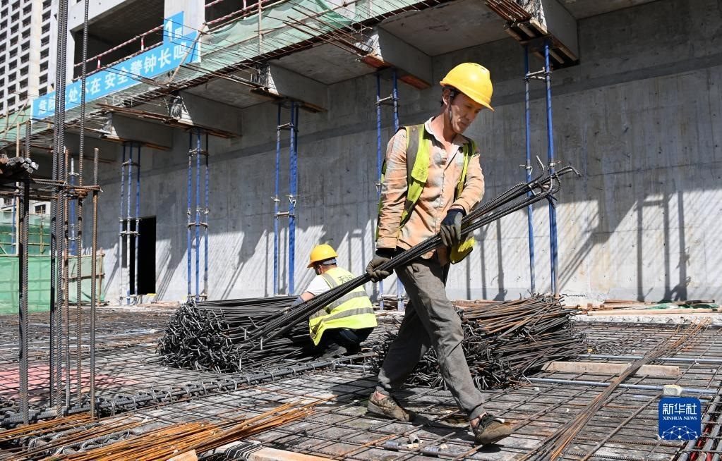 5月1日,工人在中建二局陜西分公司高鐵新城項(xiàng)目工地施工。