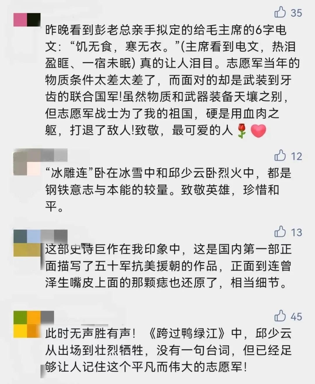 “抗美援朝絕對是值得紀(jì)念和謳歌的奇跡!這部電視劇是一部愛國主義教育的活教材!”這是網(wǎng)友對這部劇的評價。
