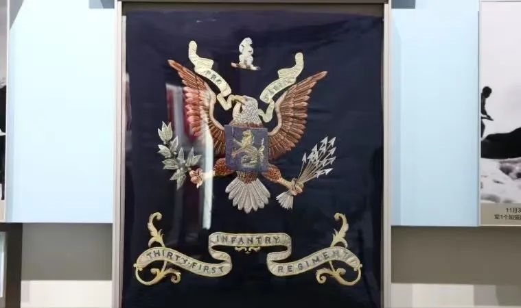這是陳列在軍博的美軍“北極熊團團旗”?!犊邕^鴨綠江》真實還原了長津湖戰(zhàn)役中,志愿軍全殲美北極熊團并繳獲其團旗的全過程。