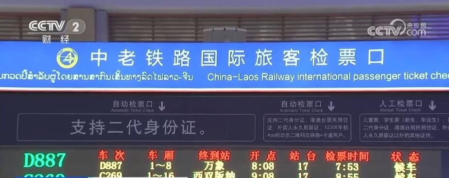 記者 范紫霄:經(jīng)過(guò)20分鐘的車(chē)程,我們現(xiàn)在已經(jīng)到了昆明南站的西進(jìn)站口?!拔逡弧毙¢L(zhǎng)假已經(jīng)到來(lái),大家可以看到我身后人頭攢動(dòng)、人流不斷。今天,我們也將體驗(yàn)一下當(dāng)日就能直達(dá)老撾萬(wàn)象的D887中老鐵路國(guó)際客運(yùn)列車(chē)。這趟列車(chē)在今早8時(shí)08分發(fā)車(chē)。