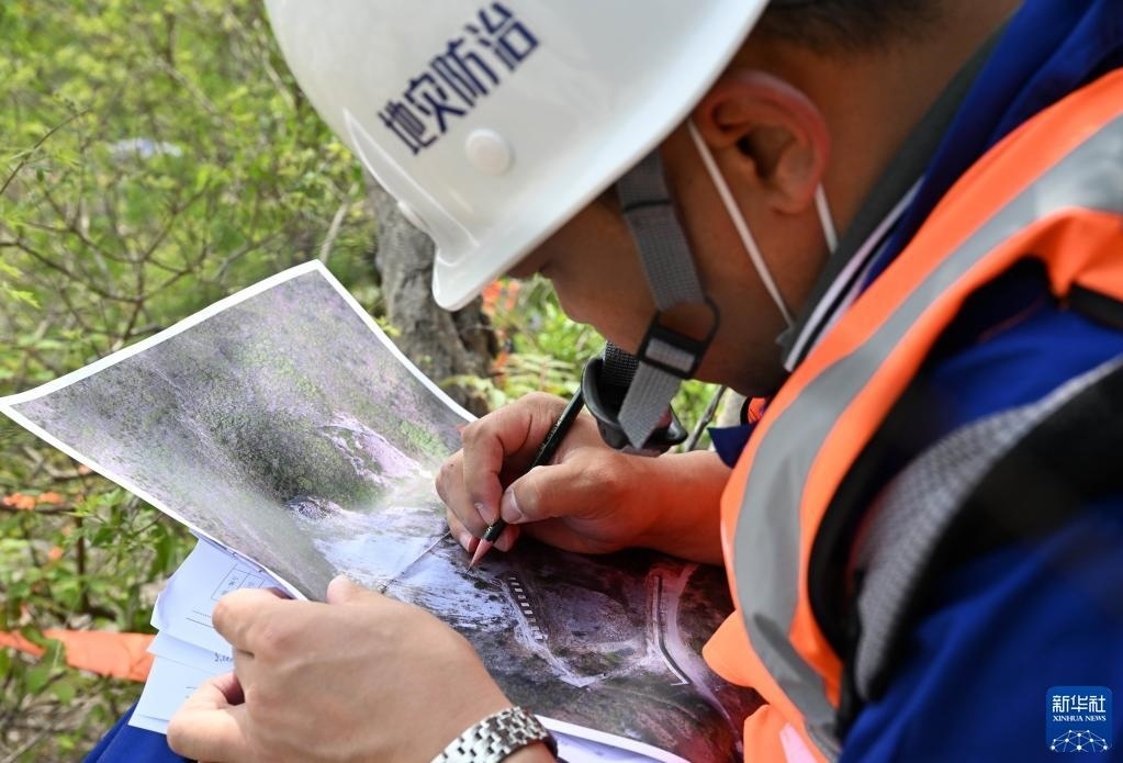 5月9日,在偏橋子滑坡地質(zhì)災(zāi)害隱患點(diǎn),參賽選手標(biāo)記滑坡體信息。