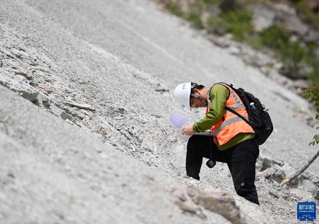 5月9日,在偏橋子滑坡地質(zhì)災(zāi)害隱患點(diǎn),參賽選手在對(duì)滑坡體進(jìn)行觀察記錄。