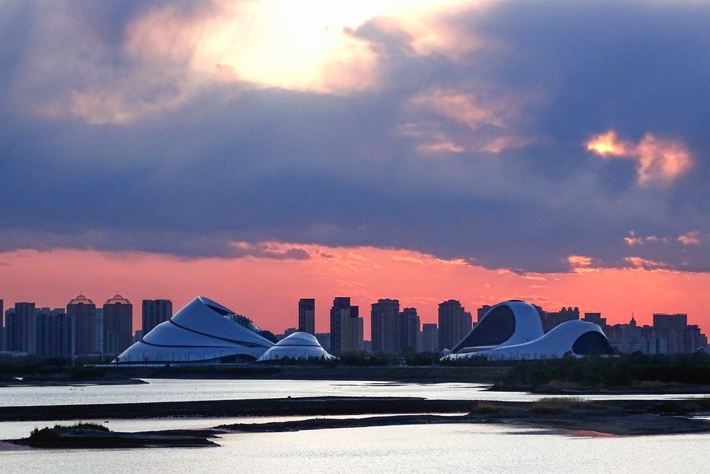 5月9日,落日時(shí)分的黑龍江省哈爾濱市太陽(yáng)島濕地,晚霞將北國(guó)冰城裝扮得絢麗無(wú)比,美不勝收。 吳胡荼 攝