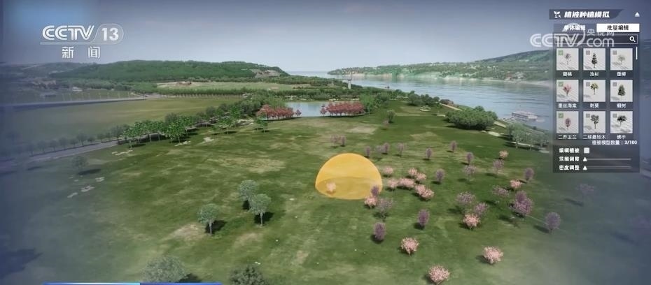 在現場,工作人員給記者演示了“生態(tài)大腦”的一種特殊的推演功能。在“數字廣陽島”上的同一片區(qū)域,先后采用兩種不同的植被種植方案,過了十幾秒,“生態(tài)大腦”就自動推演出了10年后這片區(qū)域在不同方案下的植被樣貌。