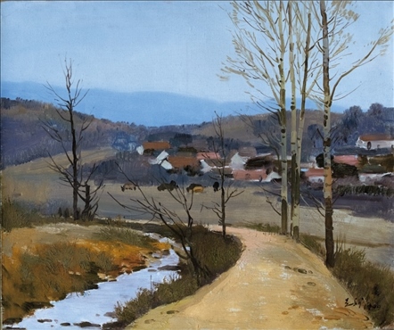 《激戰(zhàn)松骨峰》描繪的是抗美援朝戰(zhàn)爭(zhēng)中,中國(guó)人民志愿軍與美軍激烈廝殺的悲壯場(chǎng)面。作者從動(dòng)態(tài)型的構(gòu)圖與形象表層,把戰(zhàn)爭(zhēng)集團(tuán)之間的搏殺以濃重的筆調(diào)展現(xiàn)開(kāi)來(lái),表現(xiàn)了中國(guó)人民志愿軍英勇頑強(qiáng)、熱愛(ài)自由和勇于犧牲的精神,展示了歷史的悲劇性沖突。作者從沉甸甸的歷史中找到戰(zhàn)爭(zhēng)中最慘烈、最殘酷、最能表現(xiàn)人物悲劇性命運(yùn)的瞬間,用現(xiàn)實(shí)主義的創(chuàng)作手法,扎實(shí)、生動(dòng)地塑造了一個(gè)又一個(gè)志愿軍勇士的形象。硝煙籠罩著戰(zhàn)場(chǎng),鮮血與白雪融合成冰,敵我雙方,犬牙交錯(cuò),生死搏殺。同時(shí),也使我們感受到戰(zhàn)爭(zhēng)的殘酷與生命的脆弱。作者處理宏大的戰(zhàn)爭(zhēng)場(chǎng)面獨(dú)具匠心:陽(yáng)光透過(guò)硝煙,有節(jié)奏地營(yíng)造出戰(zhàn)場(chǎng)的空間;雪地上被間隔的藍(lán)色陰影,反襯出黃褐色的主調(diào)。作品對(duì)細(xì)部進(jìn)行了恰如其分的刻畫(huà),但又不失對(duì)整體宏觀的把握,厚重的色彩中透出熱情,樸拙的筆觸映著畫(huà)家的激動(dòng)。