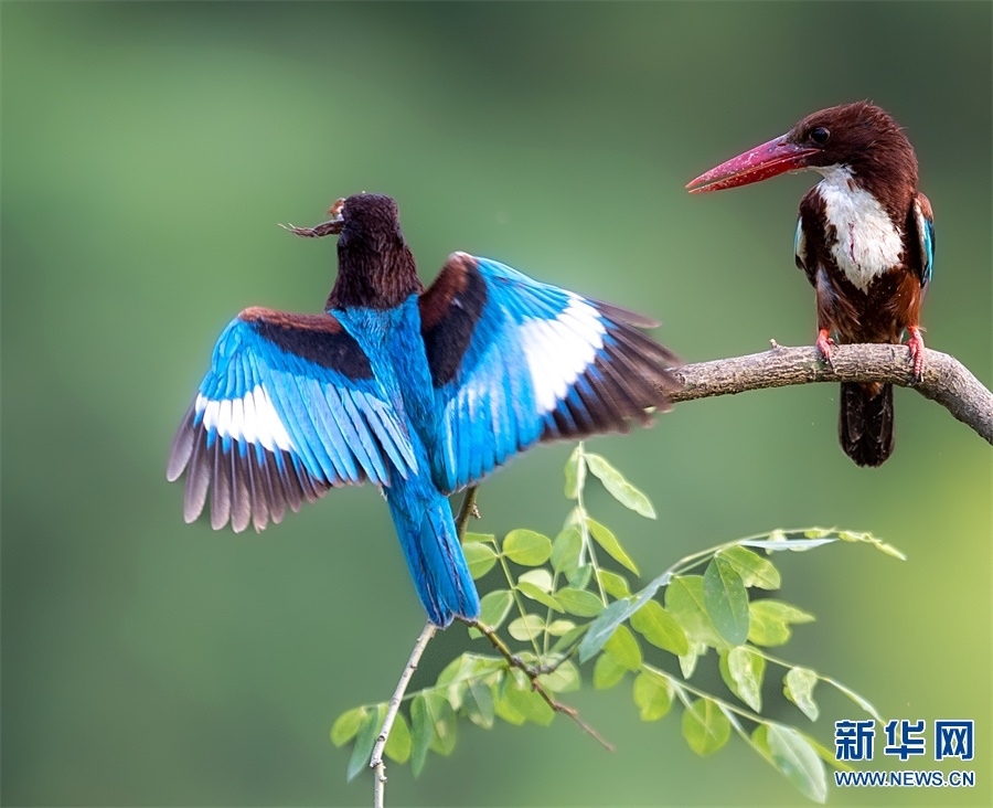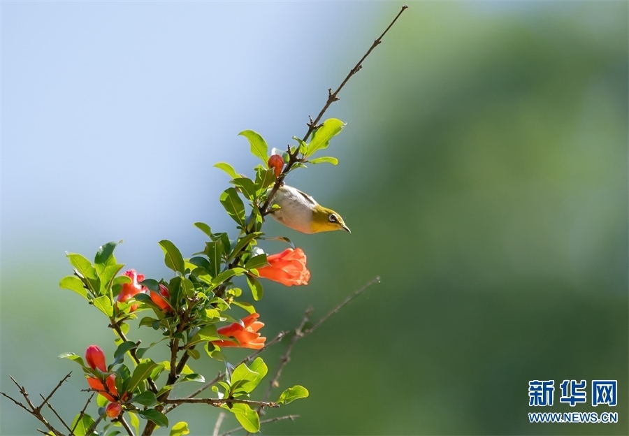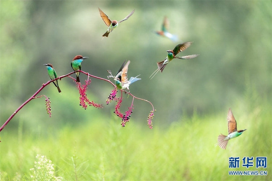 河南省信陽市新縣位于南北氣候過渡帶,地跨長(zhǎng)江、淮河兩大流域,植被覆蓋率達(dá)95%,森林覆蓋率達(dá)76.7%。得天獨(dú)厚的自然生態(tài)環(huán)境,吸引了藍(lán)喉蜂虎、藍(lán)翡翠、戴勝等眾多鳥類在這里“安營(yíng)扎寨”,繪出一幅生動(dòng)和諧的自然畫卷。新華網(wǎng)發(fā)(闞敦傳 攝)