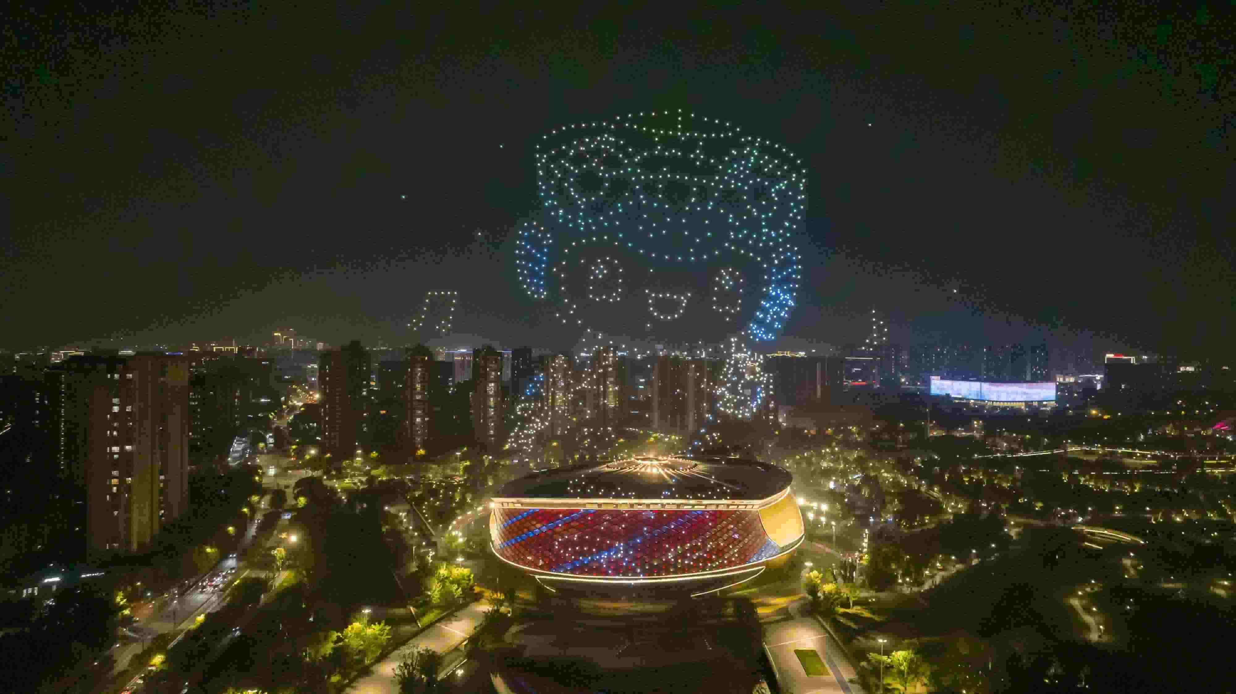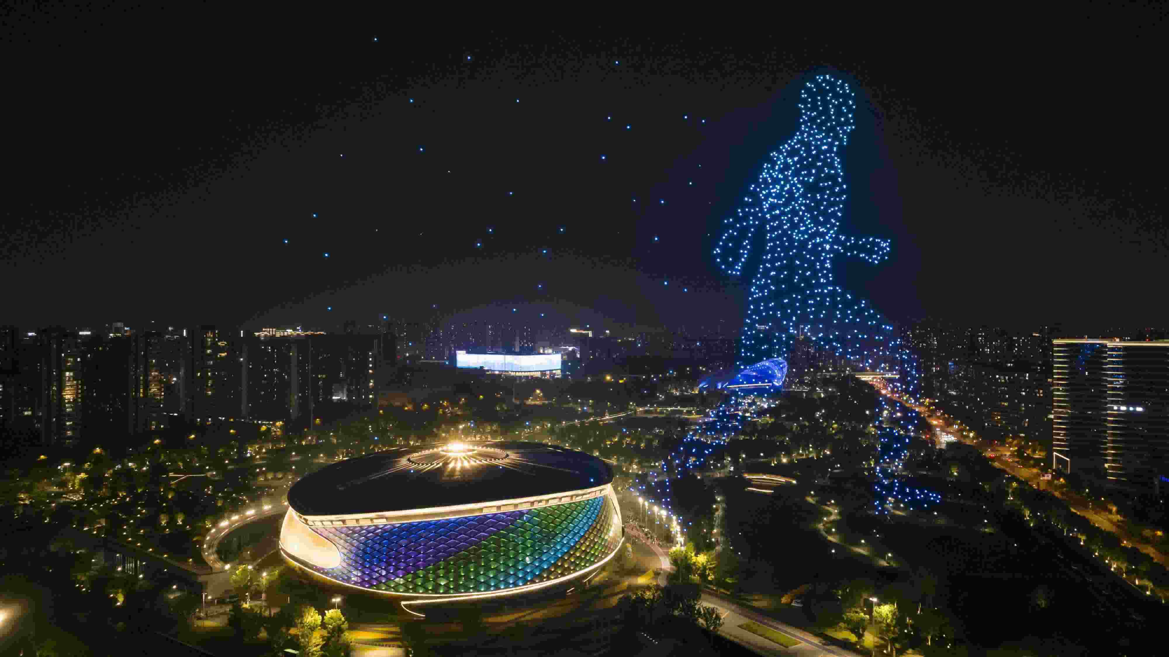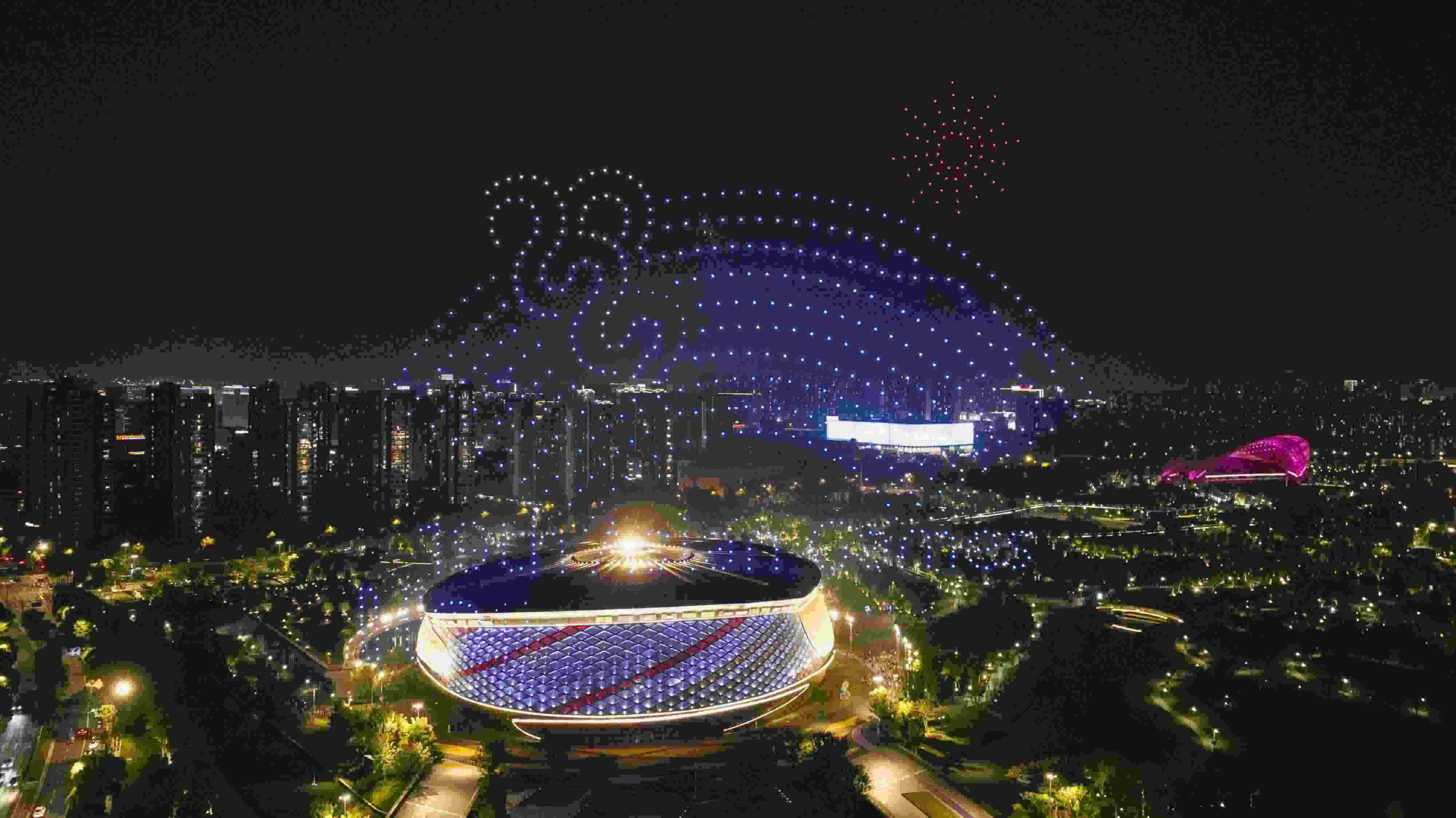 杭州亞運公園上演無人機燈光秀