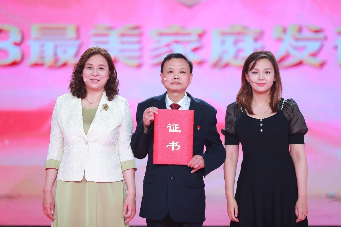 本次發(fā)布儀式以“激揚(yáng)家國情,奮斗新征程”為主題,通過真實的人物短片、生動的現(xiàn)場訪談、豐富多樣的文藝節(jié)目,從不同側(cè)面講述了10戶最美家庭的感人故事和家庭成員的工作生活感悟。這10戶最美家庭是全國婦聯(lián)揭曉的2023年全國最美家庭中的典型代表,他們中有的飛天圓夢,用愛與奉獻(xiàn)書寫家國情深;有的傳承紅色家風(fēng),秉持“永遠(yuǎn)跟黨走”的家訓(xùn);有的筑路興國,祖孫三代風(fēng)雨同舟初心不改;有的傳承創(chuàng)新,接力守護(hù)中華優(yōu)秀傳統(tǒng)文化;有的為國戍邊,打造半個世紀(jì)不換防的“護(hù)邊驛站”;有的倡揚(yáng)移風(fēng)易俗,示范踐行“不要彩禮要幸?!钡奈拿餍嘛L(fēng);有的清正廉潔,用實際行動守護(hù)和傳承著“忠”“孝”“廉”的優(yōu)良家風(fēng);有的用誠信播種,助力糧食增產(chǎn)豐收;有的以書香潤家,播撒讀書立人的教育理念;有的跋山涉水,用阿肯彈唱助力民族團(tuán)結(jié)……他們在家庭中積極踐行社會主義核心價值觀,在各行各業(yè)立足崗位發(fā)揚(yáng)勞動精神、奮斗精神、奉獻(xiàn)精神、創(chuàng)造精神、勤儉節(jié)約精神,貢獻(xiàn)突出、事跡感人,充分展示了家庭昂揚(yáng)奮進(jìn)新時代新征程的良好精神風(fēng)貌。