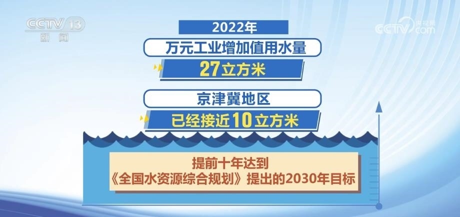 我國從“十二五”開始施行“最嚴格的水資源管理制度”。2021年,全國萬元工業(yè)增加值用水量較2012年下降55%。2022年,萬元工業(yè)增加值用水量27立方米,京津冀地區(qū)已經(jīng)接近10立方米,提前十年達到《全國水資源綜合規(guī)劃》提出的2030年目標。