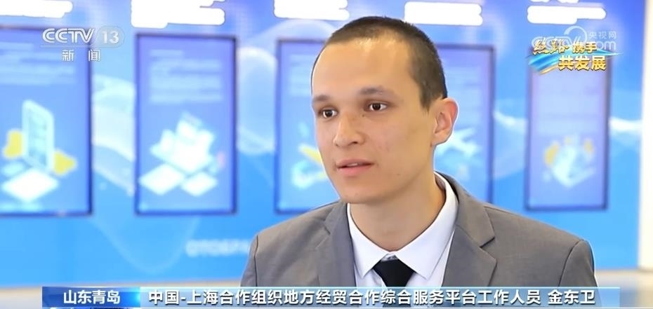 中國(guó)—上海合作組織地方經(jīng)貿(mào)合作綜服平臺(tái)工作人員 金東衛(wèi):(烏中)兩個(gè)國(guó)家之間貿(mào)易和物流關(guān)系越來越發(fā)展了,在我的老家(烏茲別克斯坦)好多中國(guó)人做生意,現(xiàn)在在中國(guó)好多我老家的人,他們也是做生意。我能說6種語言,所以我在這個(gè)地方能用到我的語言能力。