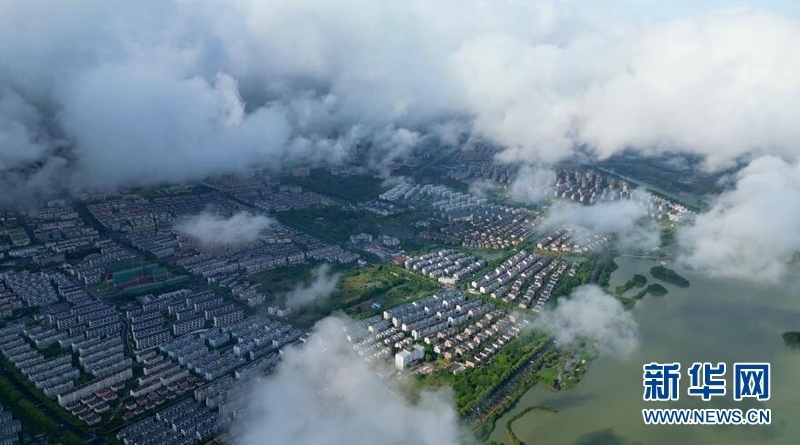 5月17日,雨后,南京市高淳區(qū)的天空掛起了一道絢麗的彩虹。云上彩虹與藍天白云交相輝映在固城湖上空,形成絕美畫卷。(文靜)