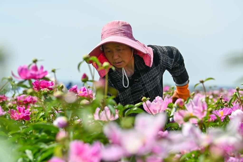“花經(jīng)濟”持續(xù)升溫下,越來越多農民走出家門,成為產業(yè)工人。入夏,走進伊寧縣天山花海景區(qū),連片芍藥、亞麻花爭相盛開,工人正在田間加緊除草、養(yǎng)護。