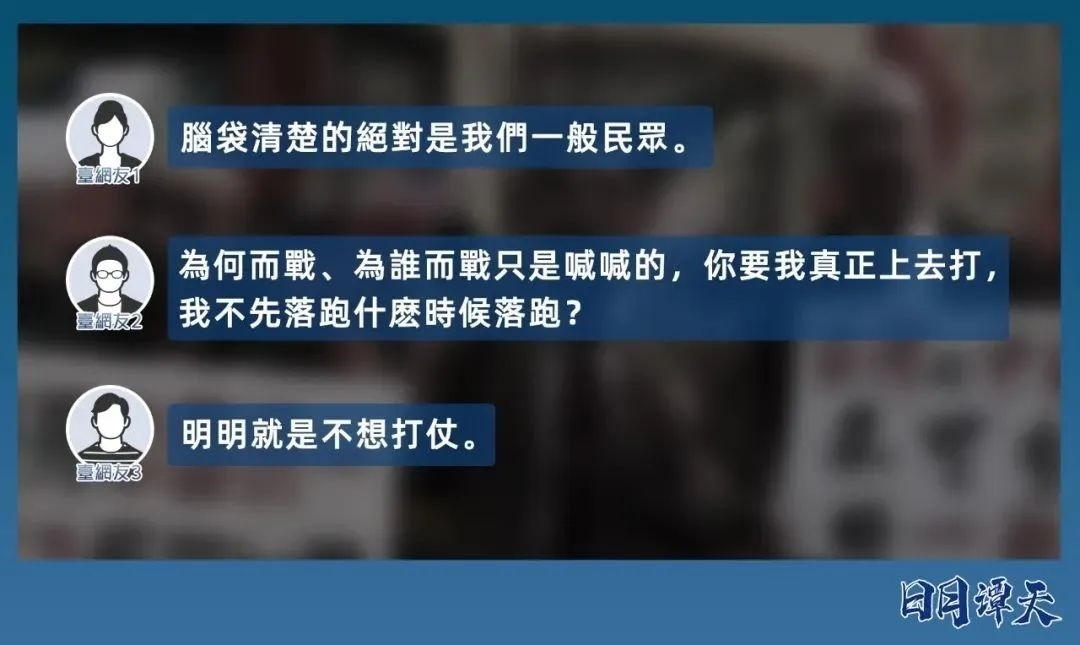 島內(nèi)專家給譚主分析了臺灣青年不愿再賣命背后的深層邏輯。越來越多臺青意識到,“臺獨”意味著戰(zhàn)爭,為“臺獨”上戰(zhàn)場,打的是一場非正義的分裂國土之戰(zhàn),要背負歷史罵名,臺灣年輕人憑什么要為此賭上性命?與其被民進黨當局裹挾著為“臺獨”送死,不如盡早“跳車”,遠離臺軍。