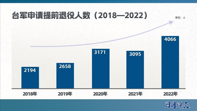 目前,臺軍實行以志愿役為主,義務(wù)役為輔的混合兵役制度。臺軍的主戰(zhàn)部隊由志愿役人員構(gòu)成,通過招募而來、至少服役4年,這次上熱搜的“申請?zhí)崆巴艘鄣?000多人”主要就是志愿役士兵。