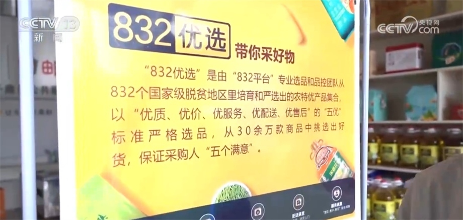 總臺央視記者 蔣樹林:這里是永順當(dāng)?shù)氐囊粋€農(nóng)村電商公共服務(wù)中心,很多“土特產(chǎn)”都通過“832平臺”走出大山,擺上貨架的產(chǎn)品都要嚴(yán)格符合五優(yōu)標(biāo)準(zhǔn),即優(yōu)質(zhì)、優(yōu)價、優(yōu)服務(wù),特別是優(yōu)配送、優(yōu)售后。