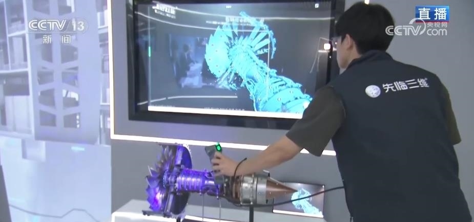 這是一款高精度的手持三維測量設(shè)備,工程師正在測量一款航空發(fā)動機模型的內(nèi)部結(jié)構(gòu),有了尺寸的信息之后,維修就可以根據(jù)內(nèi)部復(fù)雜的結(jié)構(gòu)去設(shè)計精準(zhǔn)的維修部件。它的難點是要求這款裝備在各種環(huán)境,面對各種材質(zhì)的測量時候,都能夠保持一致性的精度穩(wěn)定性。像汽車、能源裝備的三維尺寸測量,它都能做到,并且實現(xiàn)了研發(fā)、生產(chǎn)到普及應(yīng)用。讓不少制造企業(yè),嘗到了數(shù)字設(shè)備帶來的“甜頭”。