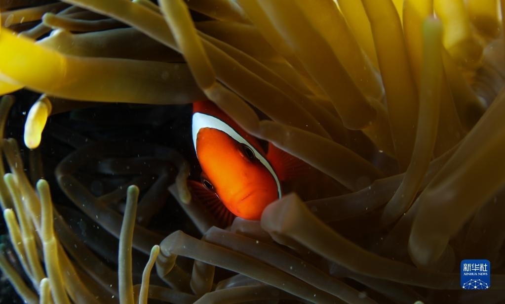 這是在蜈支洲島海域海洋牧場拍攝的小丑魚(5月17日攝)。 新華社記者 楊冠宇 攝