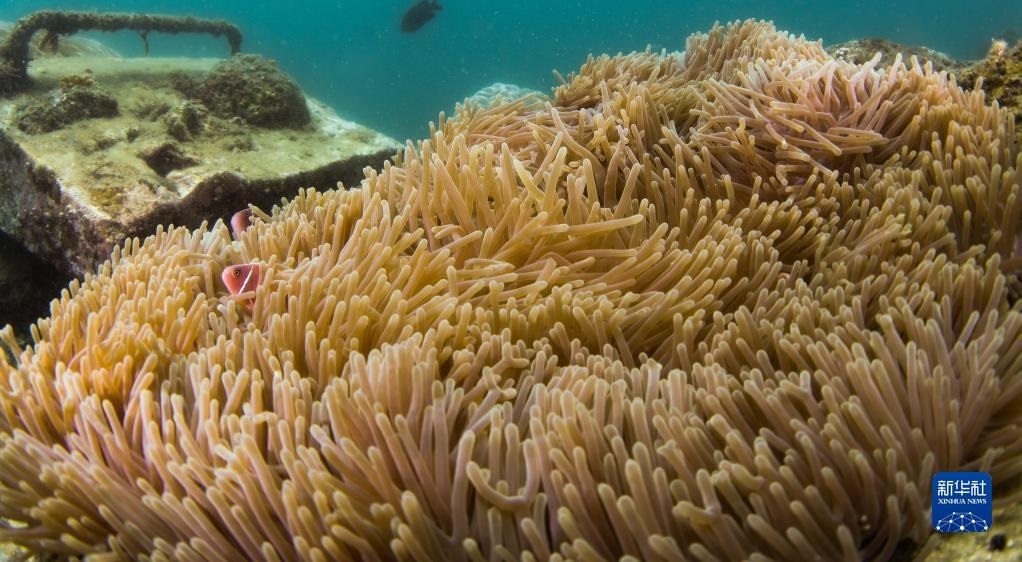 這是在蜈支洲島海域海洋牧場拍攝的小丑魚和???月18日攝)。