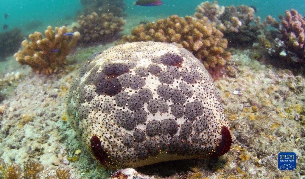 這是在蜈支洲島海域海洋牧場拍攝的面包海星(5月16日攝)。