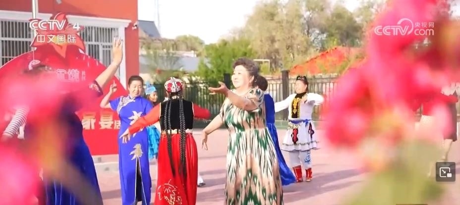 在塔城市哈爾墩社區(qū),第九屆“鄰里節(jié)百家宴”活動正在進行。各民族同胞穿上民族服飾、圍坐長桌、拉起手風琴,在音樂聲中翩翩起舞。春英是哈爾墩社區(qū)居民,是錫伯族人,她的家庭,就由多民族構(gòu)成。