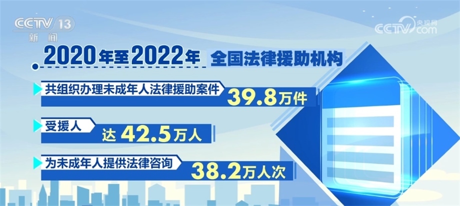 司法部相關(guān)負(fù)責(zé)人在發(fā)布會上介紹,2020年,司法部印發(fā)《未成年人法律援助服務(wù)指引(試行)》,以專章形式規(guī)范了辦理性侵害未成年人法律援助案件的工作程序和服務(wù)標(biāo)準(zhǔn)。據(jù)統(tǒng)計,2020年至2022年,全國法律援助機(jī)構(gòu)共組織辦理未成年人法律援助案件39.8萬件,受援人達(dá)42.5萬人,為未成年人提供法律咨詢38.2萬人次。