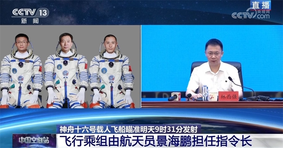 央視網(wǎng)消息:昨天(5月28日),任務(wù)總指揮部召開會(huì)議,研究確定了神舟十六號(hào)載人飛船發(fā)射計(jì)劃和航天員飛行乘組。今天,我們邀請到中國載人航天工程辦公室副主任、工程新聞發(fā)言人林西強(qiáng)先生給大家介紹情況,并回答各位感興趣的問題。