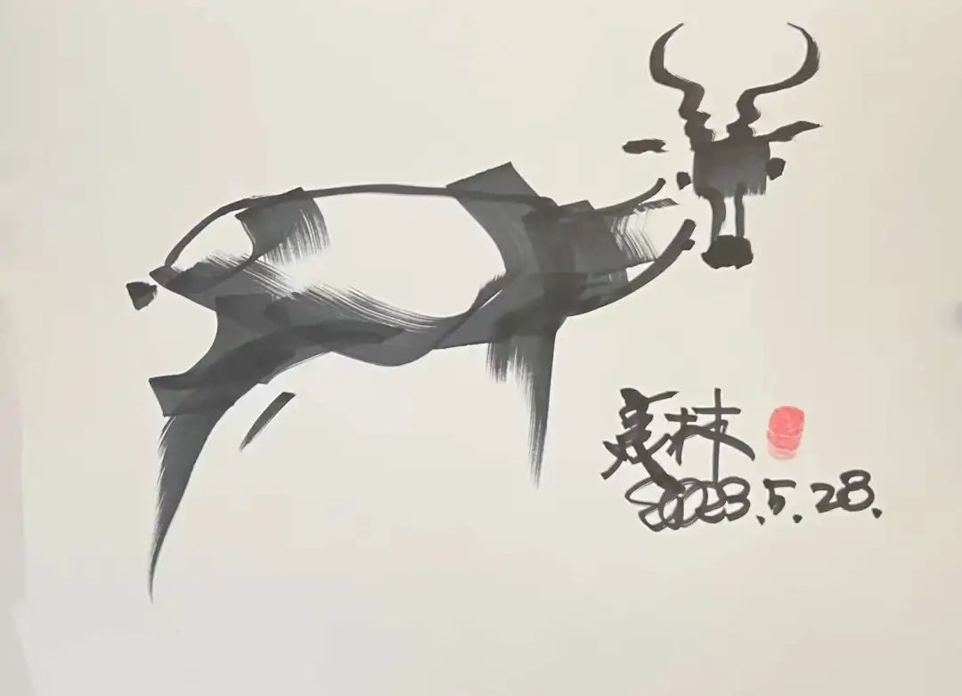 韓美林看得入神之際,隨手拿起筆來,就在紙上開始描繪惟妙惟肖的“高原小精靈”,邊畫還邊對著保護站的工作人員說,“你們的監(jiān)控能截圖嗎?要是能,回頭有了原羚跳躍、奔跑的照片,一定發(fā)給我,我通過畫紙能讓更多人認識它們?!彪S著說,紙上兩只可愛的普氏原羚就誕生在韓美林的筆下了。保護站的工作人員感嘆,“韓老師對動物真是太愛了,怎么只看了兩眼,就能畫得這么美?!彪x別前,韓美林對工作人員們說:“大家辛苦了,你們的工作很偉大,是在護佑生命,護佑三江源的生態(tài),我們要向你們致敬。”