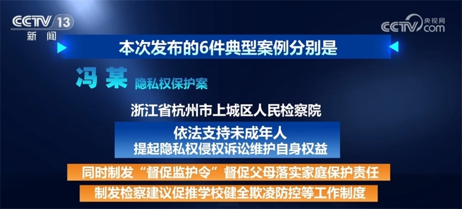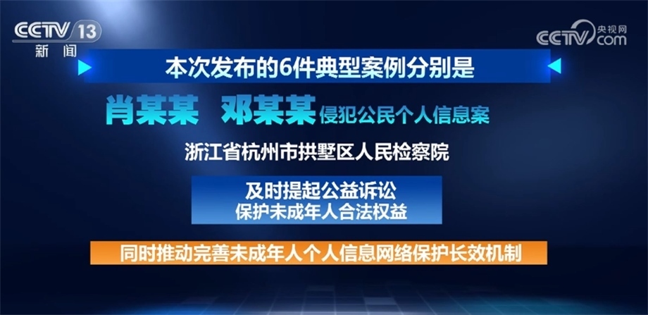 發(fā)布會(huì)上,最高檢還聯(lián)合國(guó)家網(wǎng)信辦、國(guó)務(wù)院婦兒工委,發(fā)布了6件網(wǎng)絡(luò)保護(hù)典型案例,為各地檢察機(jī)關(guān)對(duì)辦理同類(lèi)問(wèn)題提供案例指導(dǎo)和規(guī)則指引。