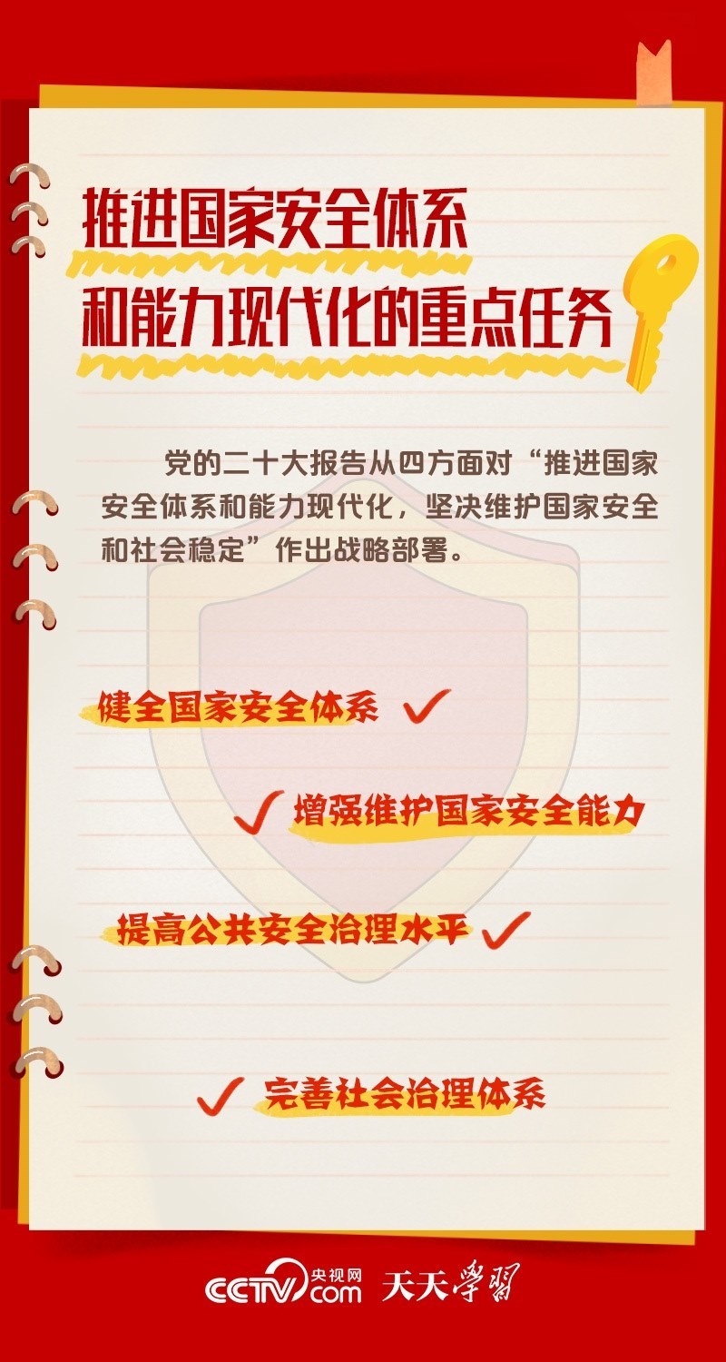 總書記多次強調(diào)要推進國家安全體系和能力現(xiàn)代化。央視網(wǎng)《天天學(xué)習(xí)》梳理相關(guān)內(nèi)容,帶您了解總書記治國理政關(guān)鍵詞——國家安全體系和能力現(xiàn)代化。