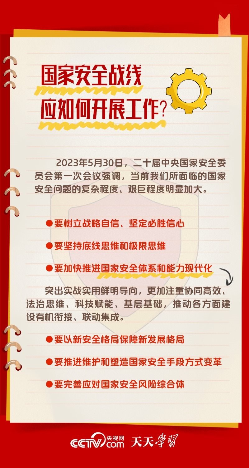 5月30日,習(xí)近平總書記主持召開二十屆中央國家安全委員會第一次會議時強調(diào),要全面貫徹黨的二十大精神,深刻認識國家安全面臨的復(fù)雜嚴峻形勢,正確把握重大國家安全問題,加快推進國家安全體系和能力現(xiàn)代化,以新安全格局保障新發(fā)展格局,努力開創(chuàng)國家安全工作新局面。