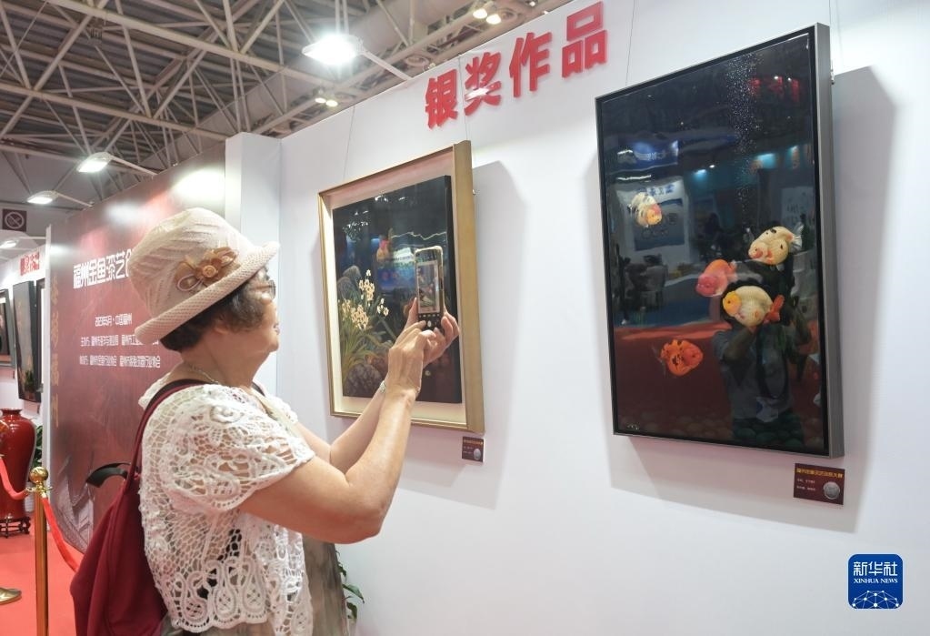 當日,第十屆中國(福州)金魚文化節(jié)在福州海峽國際會展中心舉行,金魚與以金魚為題材的福州傳統(tǒng)漆藝作品同場斗艷,展區(qū)內除展示第六屆中國(福州)金魚大賽獲獎的金魚外,還展示了首屆福州“金魚”漆藝創(chuàng)新大賽的近百件作品。新華社記者 林善傳 攝