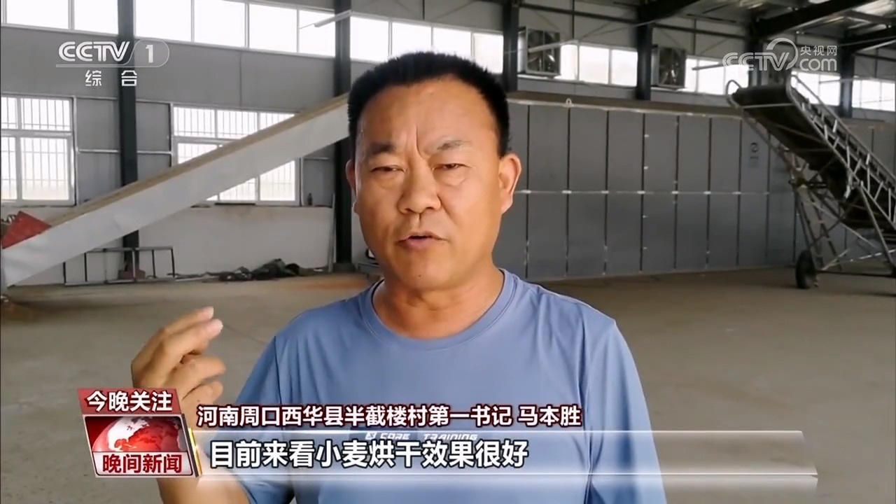 河南周口西華縣半截樓村第一書記 馬本勝:目前來(lái)看小麥烘干效果很好,我們號(hào)召村民抓緊時(shí)間搶收,我們這里免費(fèi)為村民烘干。