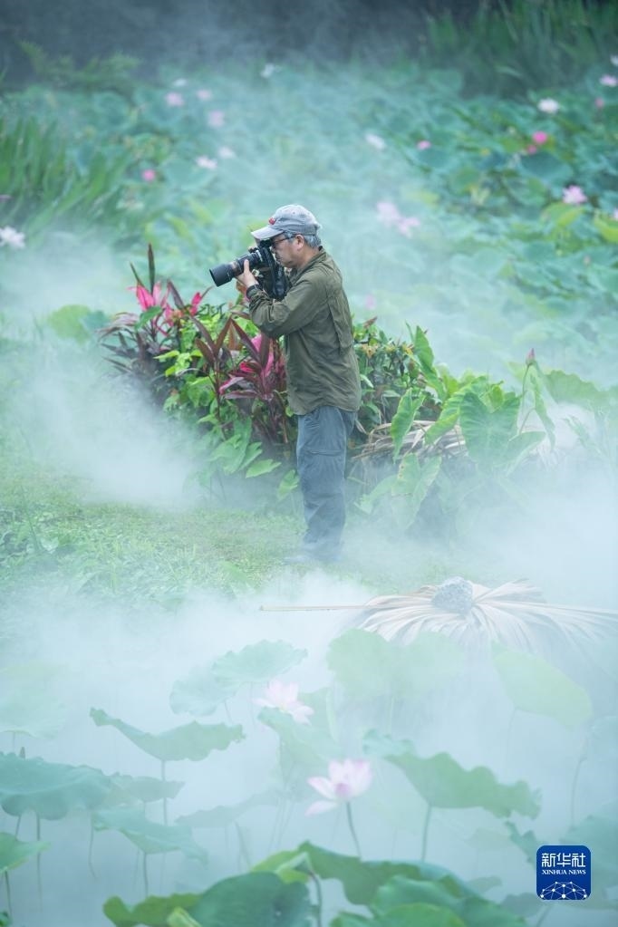6月9日,人們?cè)诎拈T(mén)龍環(huán)葡韻拍攝荷花。