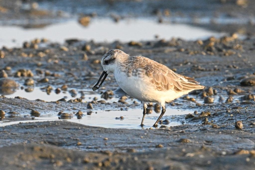 世界珍稀鳥(niǎo)類(lèi)勺嘴鷸在海南儋州灣濕地覓食。新華社記者 蒲曉旭 攝