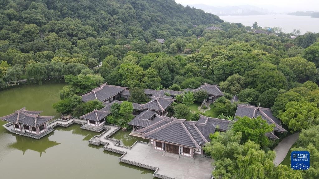 這是6月3日拍攝的位于浙江省杭州市富陽區(qū)的富春山館(無人機(jī)照片)。新華社記者 張端 攝