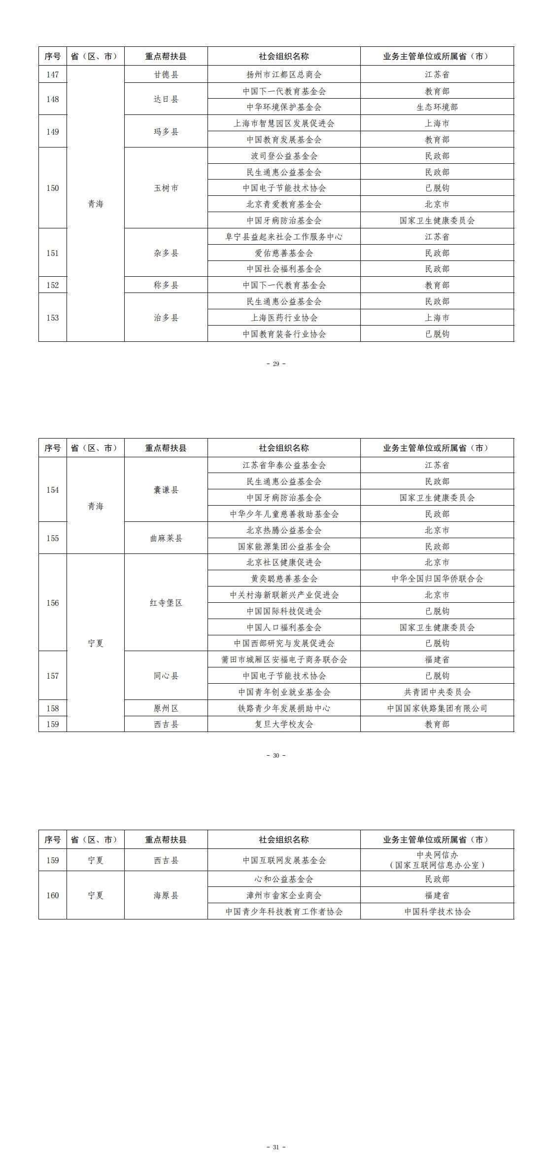 央視網(wǎng)消息:據(jù)民政部網(wǎng)站消息,為深入貫徹落實黨的二十大決策部署,根據(jù)《社會組織助力鄉(xiāng)村振興專項行動方案》,民政部、國家鄉(xiāng)村振興局在社會組織自愿報名、有關(guān)部門推薦申報、160個國家鄉(xiāng)村振興重點幫扶縣同意對接的基礎(chǔ)上,形成了《全國性社會組織、東部?。ㄖ陛犑校┥鐣M織與160個國家鄉(xiāng)村振興重點幫扶縣結(jié)對幫扶名單》(見附件),現(xiàn)予印發(fā)執(zhí)行,有關(guān)工作通知如下。