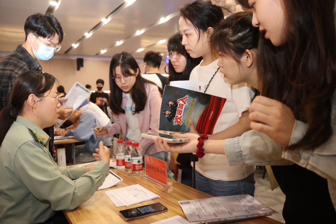 這次洽談活動,讓學(xué)生們更加詳細了解了文職人員的職能定位、使命任務(wù)以及隊伍建設(shè)情況。就讀于該校外國語學(xué)院英語口譯專業(yè)的碩士研究生梁玉靜說:“我讀本科時就報名參軍了,由于種種原因沒能如愿,這次你們來洽談又給了我機會,真希望能通過這次活動走進夢想中的軍營,為國防和軍隊建設(shè)做貢獻?!?/p>