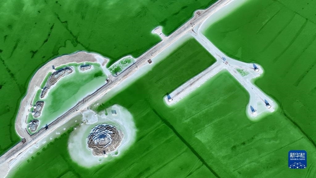 這是6月8日拍攝的察爾汗鹽湖景色(無(wú)人機(jī)照片)。