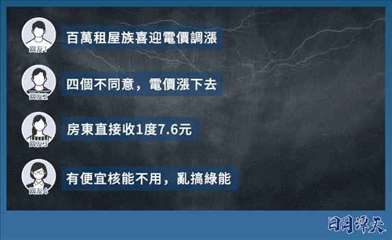 更讓島內(nèi)民眾憤怒的是,用電沒有保障,電價還屢屢上漲。去年7月和今年4月,臺灣電力公司(“臺電”)已兩度調(diào)漲電價,平均累計漲幅近20%。而當(dāng)6月到9月實行“夏月電價”時,電價還將創(chuàng)下臺灣地區(qū)史上新高。