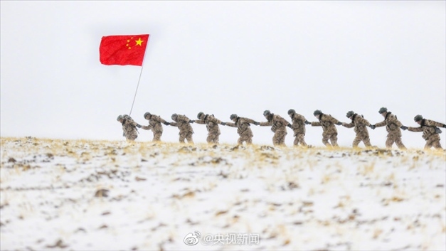 近日,新疆軍區(qū)某合成團(tuán)官兵在海拔5200米的高原,開展邊境巡邏任務(wù)。皚皚白雪之上,邊防官兵手拉著手前行,臉頰凍得通紅,笑容卻堅(jiān)定又自豪。
