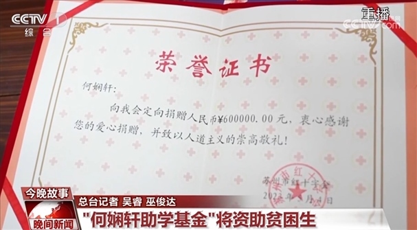 經(jīng)過安徽省紅十字會(huì)和江蘇省蘇州市紅十字會(huì)的聯(lián)系協(xié)調(diào),何嫻軒老人的善款最終被定向捐獻(xiàn)給她家鄉(xiāng)安徽省的天長中學(xué),用于資助品學(xué)兼優(yōu)的貧困學(xué)生。
