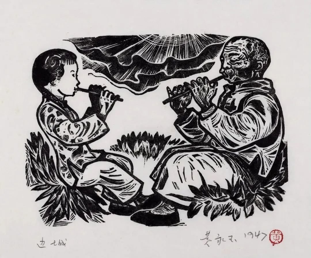 翠翠和爺爺 13.5×18.5cm 1947年 沈從文小說《邊城》插圖