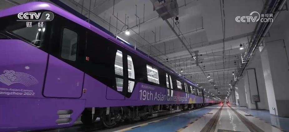 在杭州,5列亞運(yùn)主題地鐵列車正式投入運(yùn)營(yíng)。車身以及車廂內(nèi)的座椅、扶手,均為亞運(yùn)會(huì)色系中的“虹韻紫”。